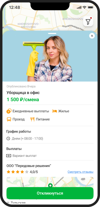 Просто разместите вакансию на карте и начтите получать отклики уже сегодня!